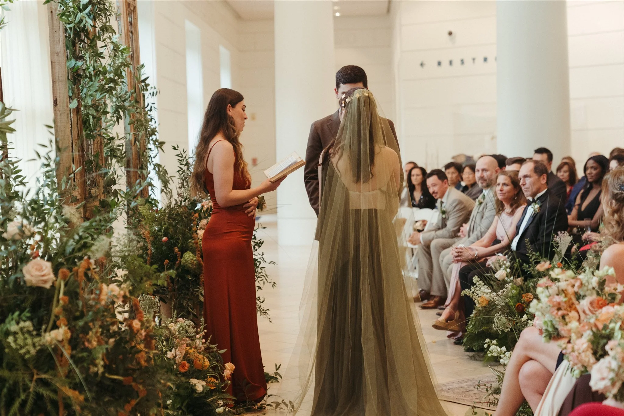 It was a sweet surprise for Caitlin and Alex, a reminder that the best wedding moments often happen when thoughtful design meets a bit of magic. From the lush moss runners to candlelit centerpieces and the towering dinosaurs looking on, the day was layered with charm and delight from every angle.