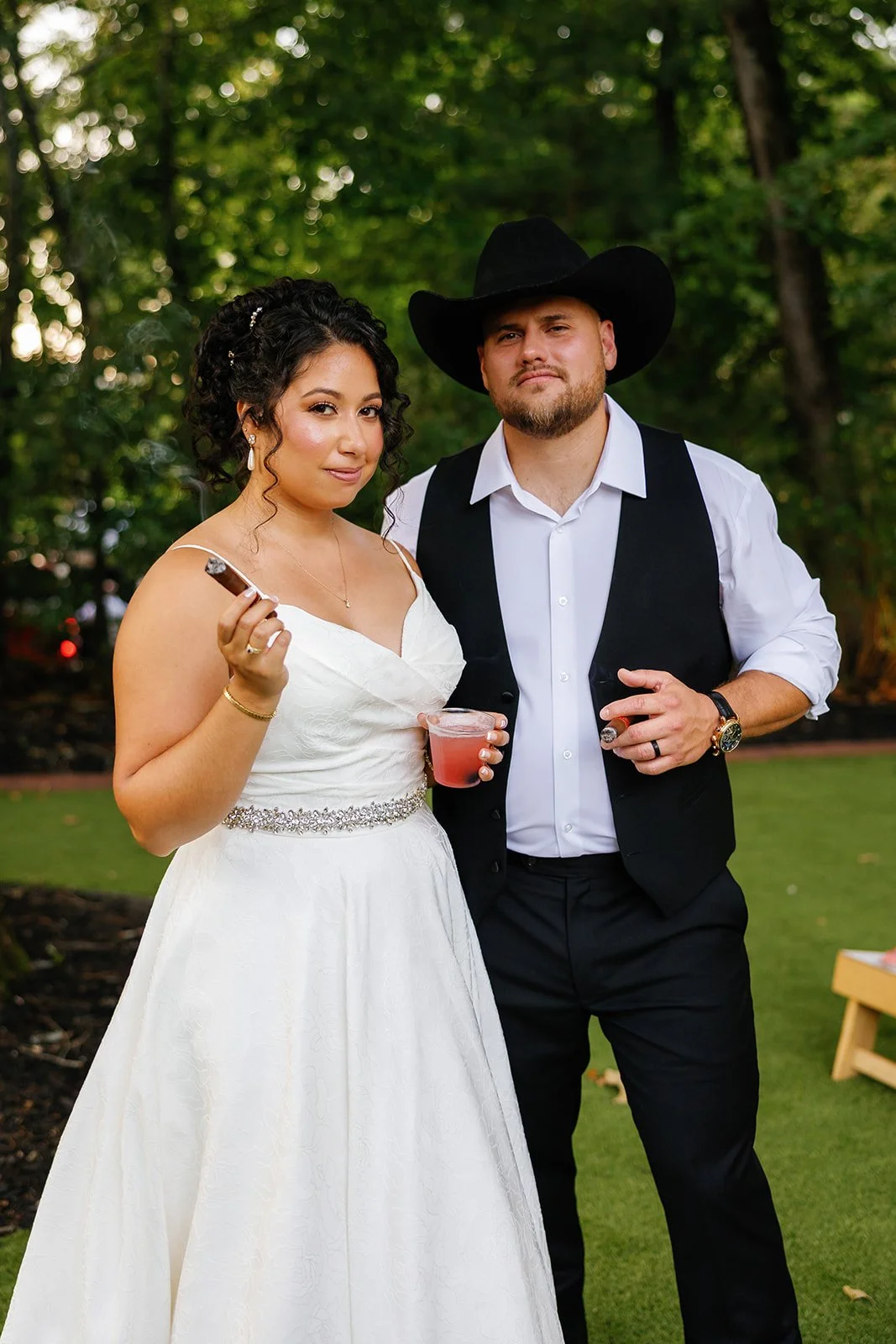 For Ty & Brittany, this historic venue became the stage for a celebration filled with charm, personality, and unforgettable details. From cascading florals to candlelit farm tables, and even a mobile cigar bar that kept the festivities lively, every moment was infused with warmth and style.